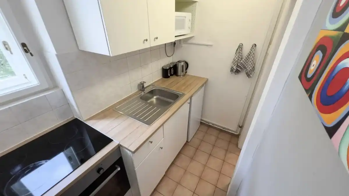 Located in Vinohrady area, just 7 minutes by tram to the heart of Prague city centre. This flat is the perfect base to explore and enjoy this must-see beautiful city. There are shops, restaurants, coffee shops and more just a couple of minutes walk away. The flat features an ingenious raised double bed that maximises your living space and plenty of storage to keep coats, shoes and everything else tidy and organised. The window overlooks a courtyard. The space include table and chairs for four and a 3 seater sofa to watch TV or relax. And this quickly transforms into a bed if needed. The Kitchen has been fitted with all new appliances (includes microwave, electric hob, oven) and perfect to cook up your home comforts (or try making some local dishes!). The whole flat is available for your use and is located on risen ground floor.
